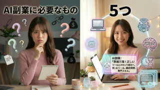 「AI副業を始めたいけど、何が必要なの?」「特別なスキルや高いパソコンは必要?」AI副業に興味があっても、最初に必要なものが分からず不安に感じている人は多いです。この記事では、初心者でも安心してスタートできるように、AI副業に必要な5つのポ...